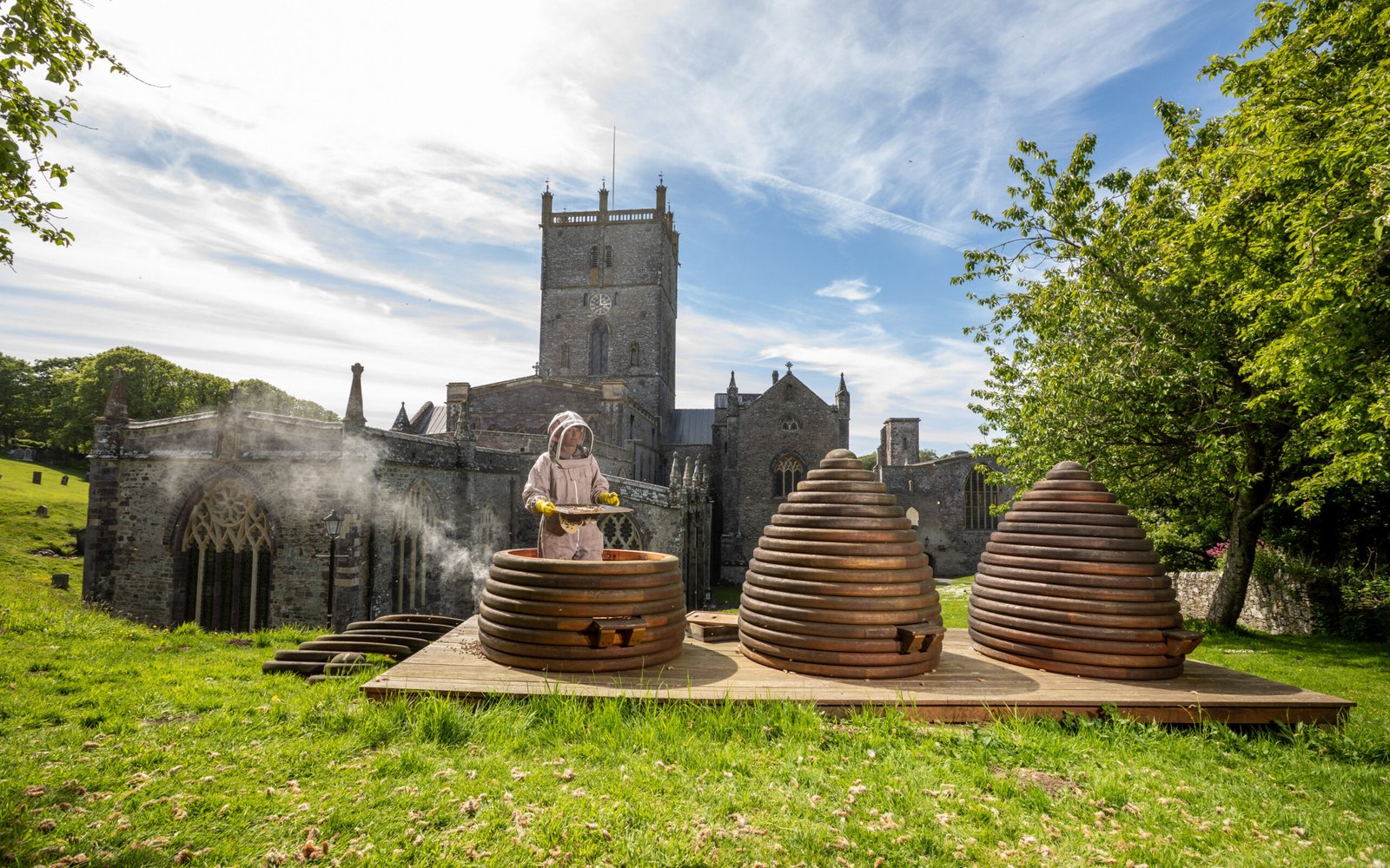 Giant wooden beehives in St Davids and Ferns cathedrals unite art, heritage, and sustainability to celebrate the vital role of bees.